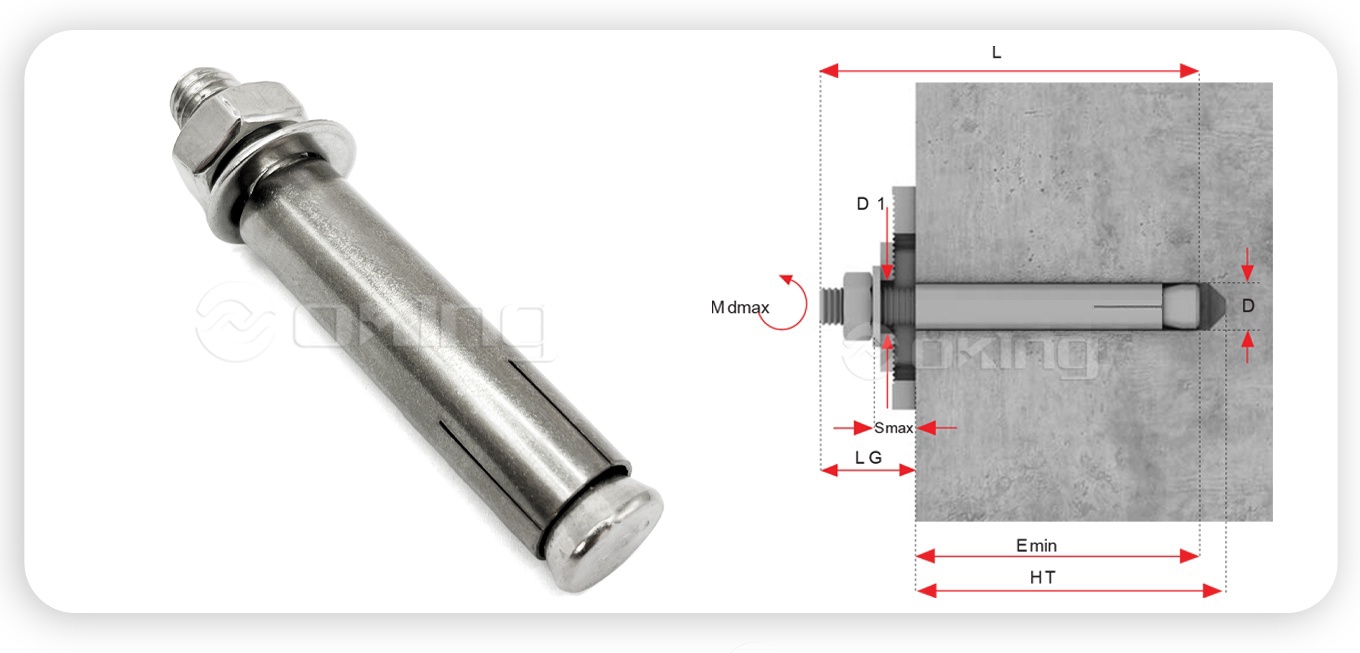 1. Onmiddellijke verankering: hamer erin, draai de moer aan en zorg voor volledige uitzetting van de huls;